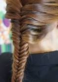 - Espinha de peixe ou escama de peixe: (a da foto também está embutida)divida o cabelo em duas partes pegue uma mecha mais fina de um lado do cabelo(pode ser o direito) mas atenção pegue da ultima parte do cabelo e passe para o outro lado ( o esquerdo se você seguiu o que escrevi acima).Agora faça mesma coisa só que ao contrário ou seja o lado que recebeu a mecha fina passa para o lado que outra mecha fina do final desta parte do cabelo.Essa trança demora muito pra você ver se está fazendo certo.É mais difícil, mas se você ver alguém fazendo você entende melhor como ela é. E com treino você pega o jeito e consegue faze-la